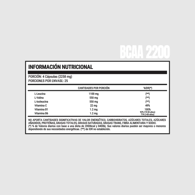 BCAA 2200 está diseñado con aminoácidos de cadena ramificada en cantidades apropiadas para mejorar la resistencia durante el entrenamiento y la posterior recuperación muscular.