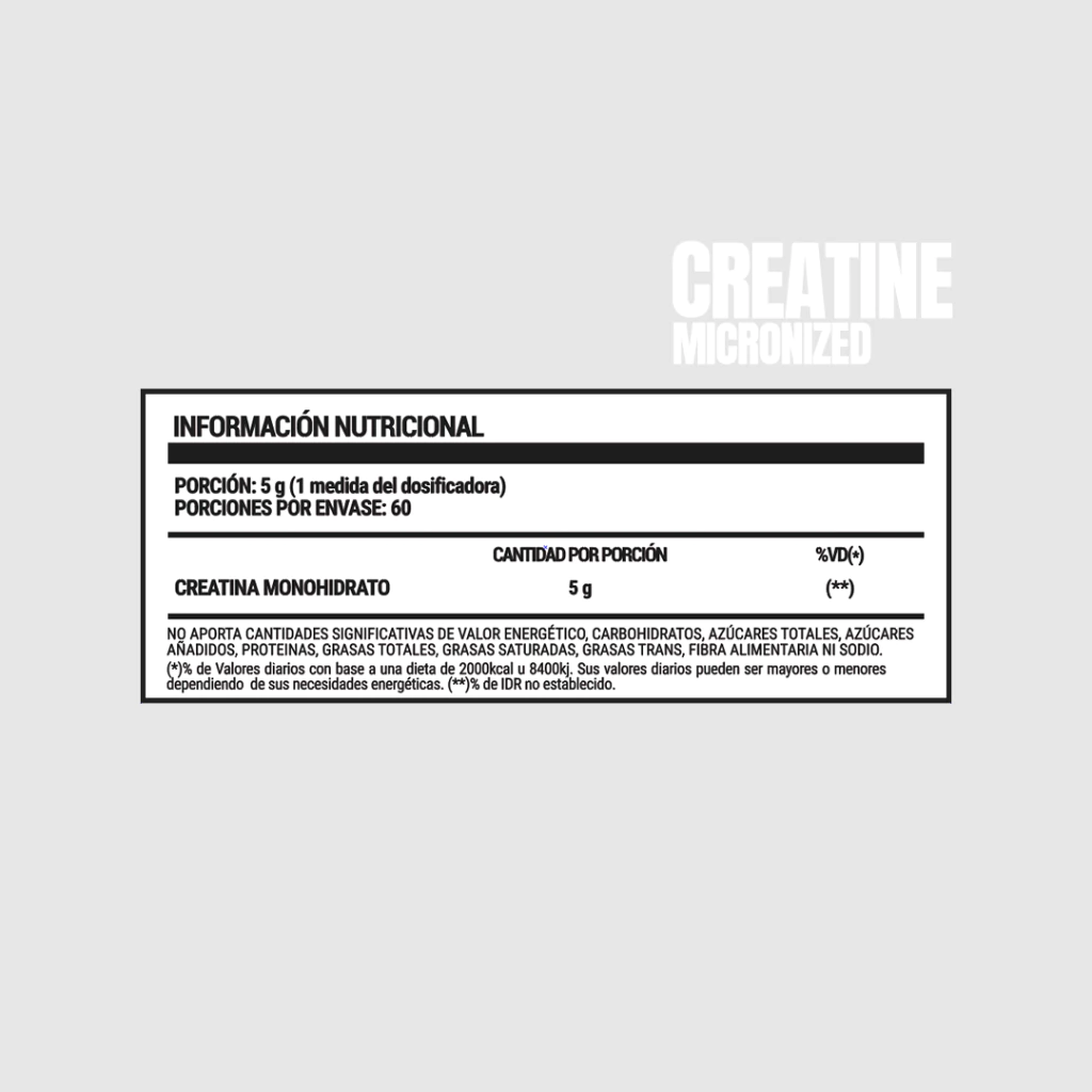La Creatine Micronized está formulada con 100% Creatina Monohidrato micronizada, garantizando un nivel de pureza del 99,9% y una alta biodisponibilidad. Este suplemento es ideal para quienes buscan potenciar su rendimiento físico, ofreciendo un apoyo esencial en el aumento de la fuerza muscular, la mejora de la resistencia y la aceleración de la recuperación muscular.
