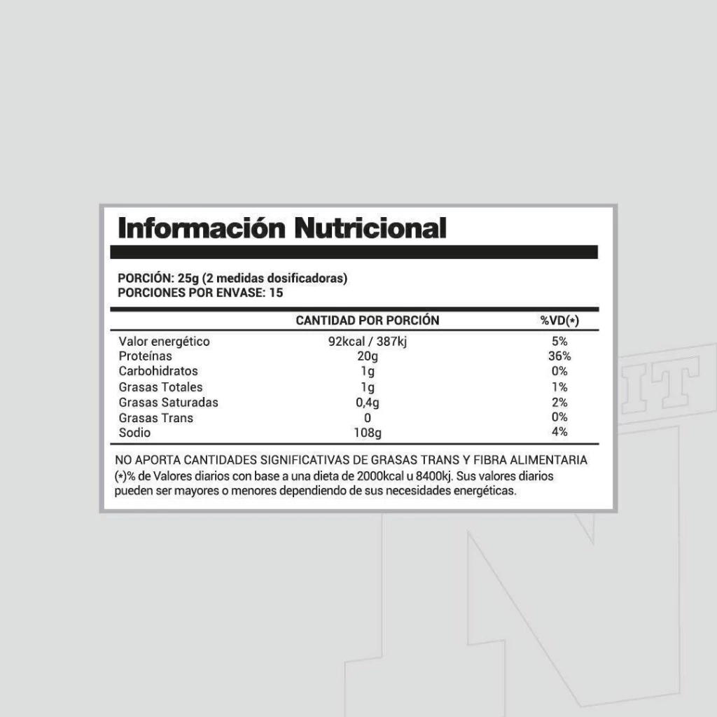 Cada porción aporta 21 g de proteína, ideal para contribuir al aumento y recuperación de la masa muscular, así como para complementar el aporte diario de proteínas.