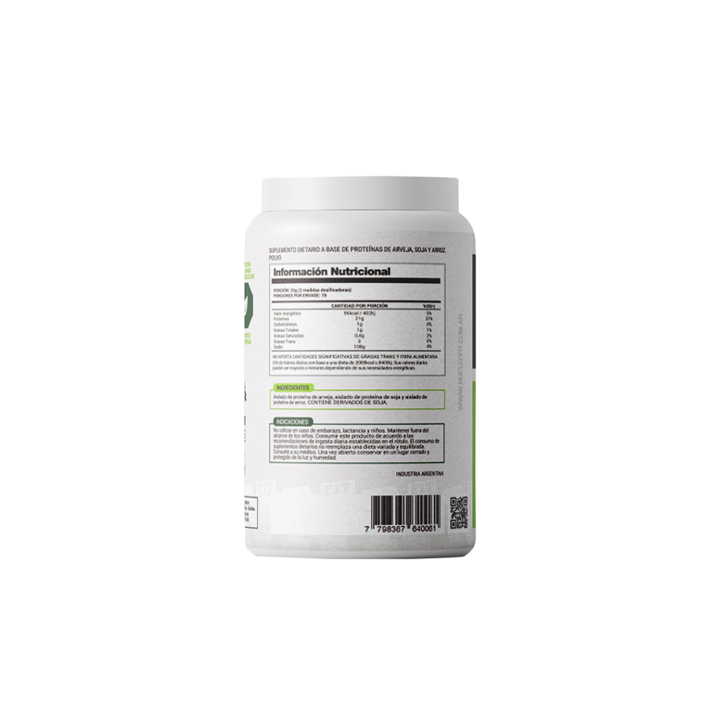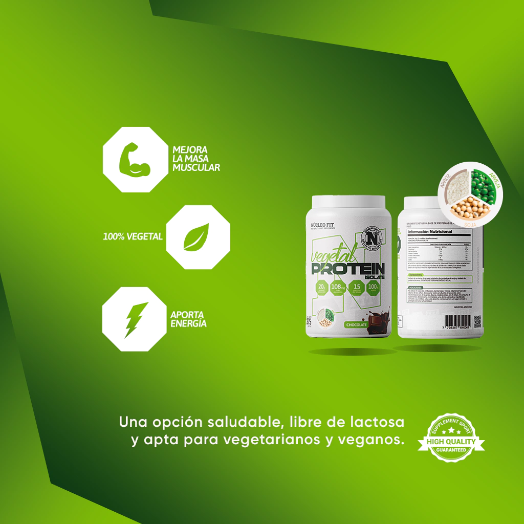 Vegetal Protein de Núcleo Fit es un suplemento proteico de alta calidad, elaborado a partir de un blend de proteína de arveja, arroz y soja aislada, lo que lo convierte en una opción 100% vegetal, libre de lactosa y apta para vegetarianos y veganos.