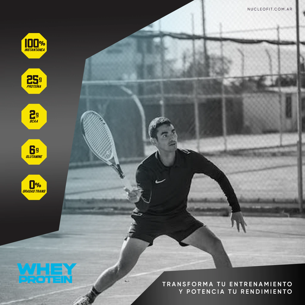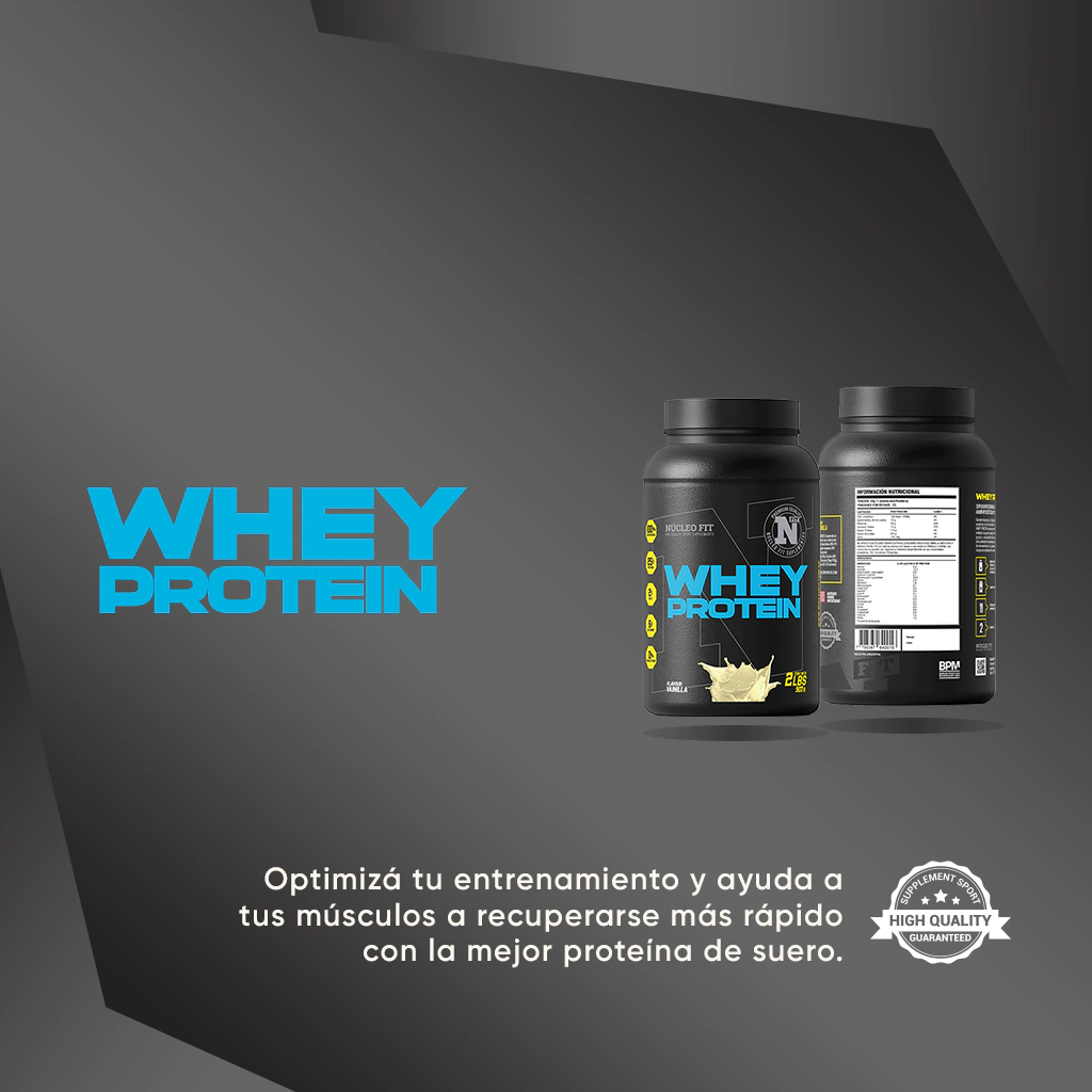 Whey Protein de Núcleo Fit es un suplemento deportivo diseñado para quienes buscan aumentar masa muscular, mejorar la recuperación y optimizar el rendimiento. Con un alto aporte proteico y un perfil completo de aminoácidos esenciales, es la opción ideal para deportistas y personas activas mayores de 18 años.